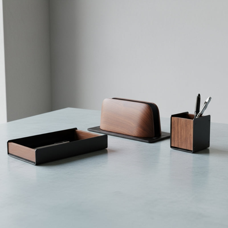 La colección Ironwood combina la calidez de la madera con la funcionalidad moderna, creando espacios equilibrados y naturales.