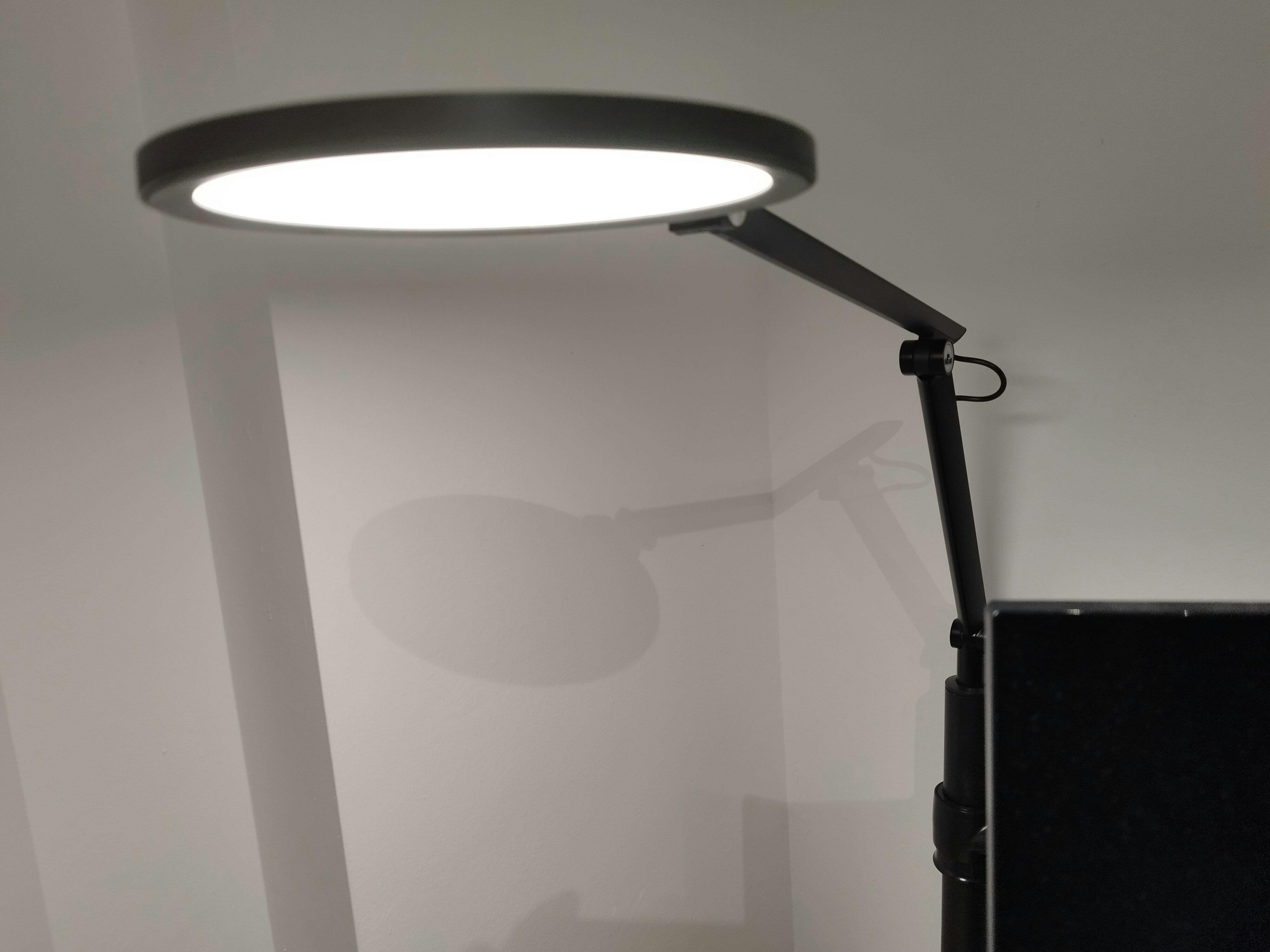 En la parte superior del eje, Lumatek integra una lámpara LED profesional con brazo flexible de tres puntos de articulación, que ofrece una iluminación precisa y regulable. Su cabezal circular de 17,5 cm permite ajustar tanto la temperatura de color (luz cálida o fría) como la intensidad de brillo, adaptándose a cada momento del día y